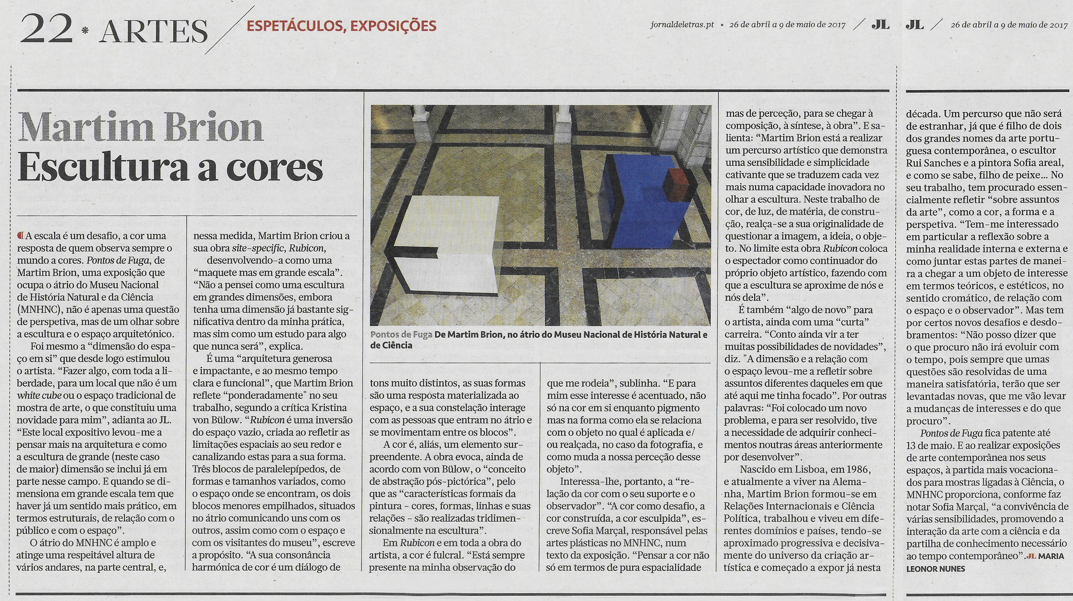 “Martim Brion, taking up this tradition and heritage, does not simply continue it, but creates a set of uneasy texts and unstable sculptures: on the one hand, what is described in the texts is not present, which forces us to think about the fragility of the real…” 2022 Beira News by José Lagiosa Full Article